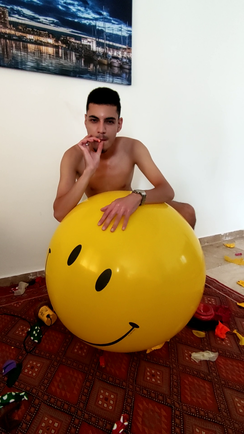 In this video the sexy french twink Zaadig cig pop 18 smiley balloons.