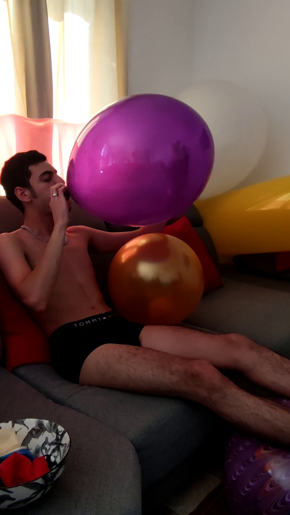 In the video Zaadig inflate 3 balloons and pop one with a knife and one with a pin.